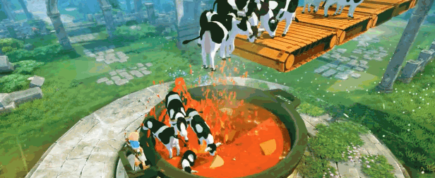 By throwing Monster Prism at creatures, you can catch them as a pet. Not only animals like cows and deer, but most of the monsters are also tamable. Monsters, Gotta Catch 'Em All!